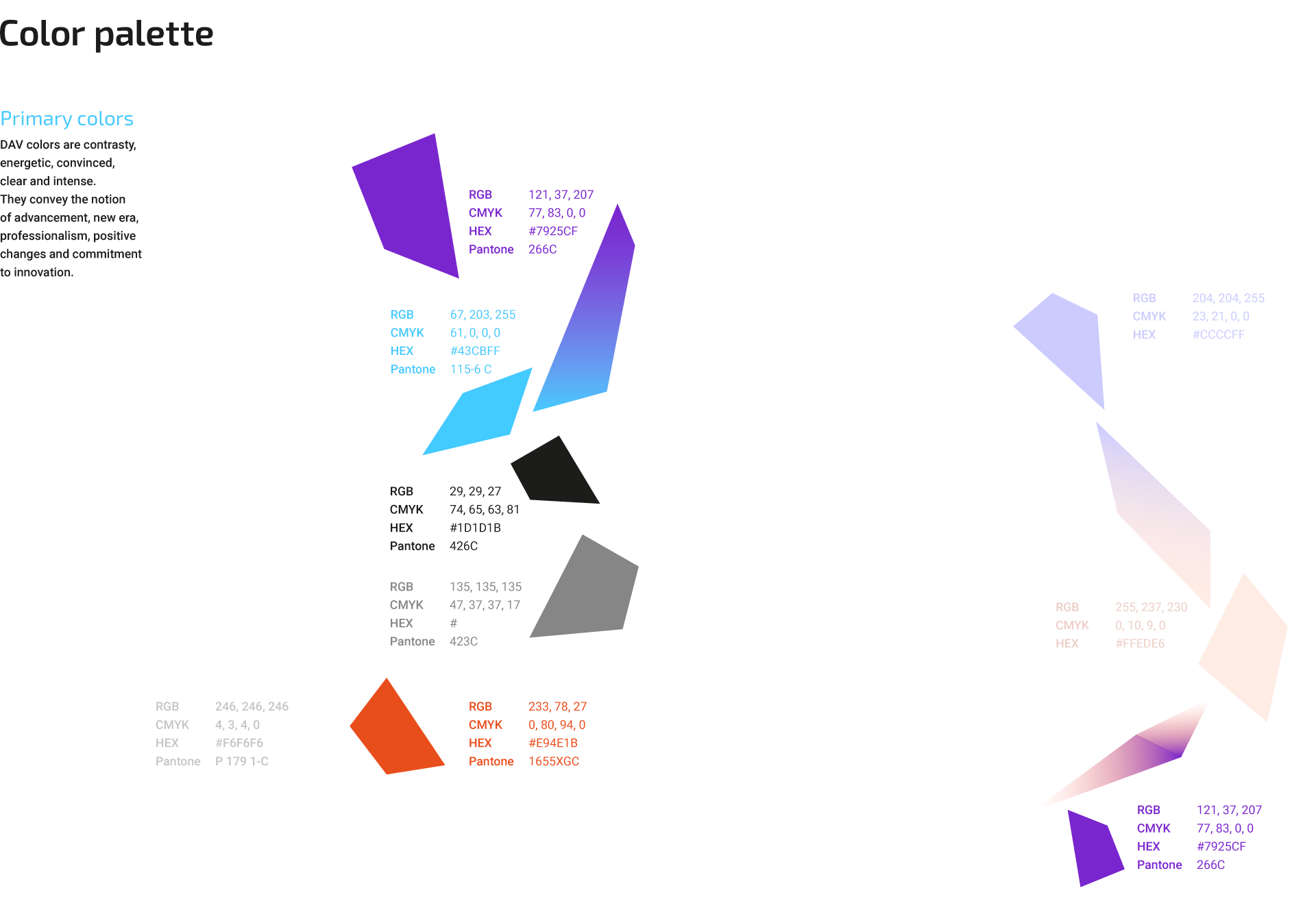 At the core of the DAV brand identity is the typographic logomark designed in a geometric abstract fashion. A diamond element of A-letter is a clue to probable cryptocurrency and blockchain motor of the system.